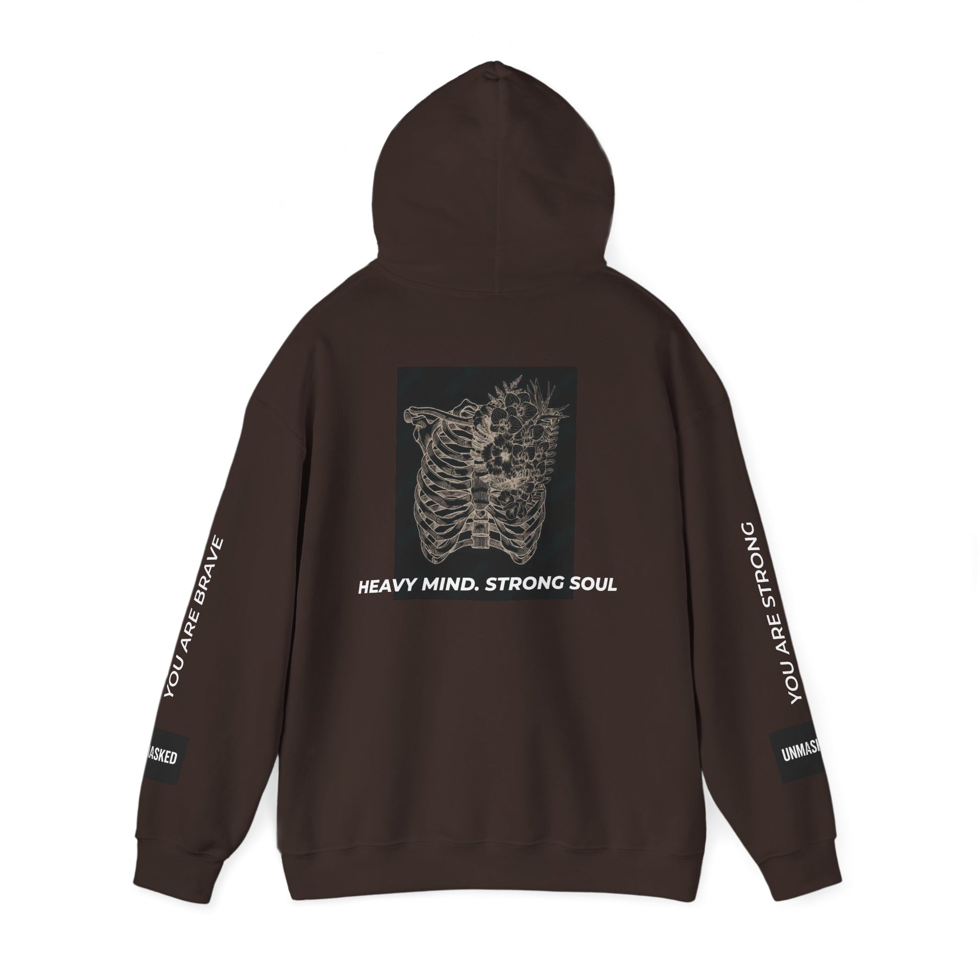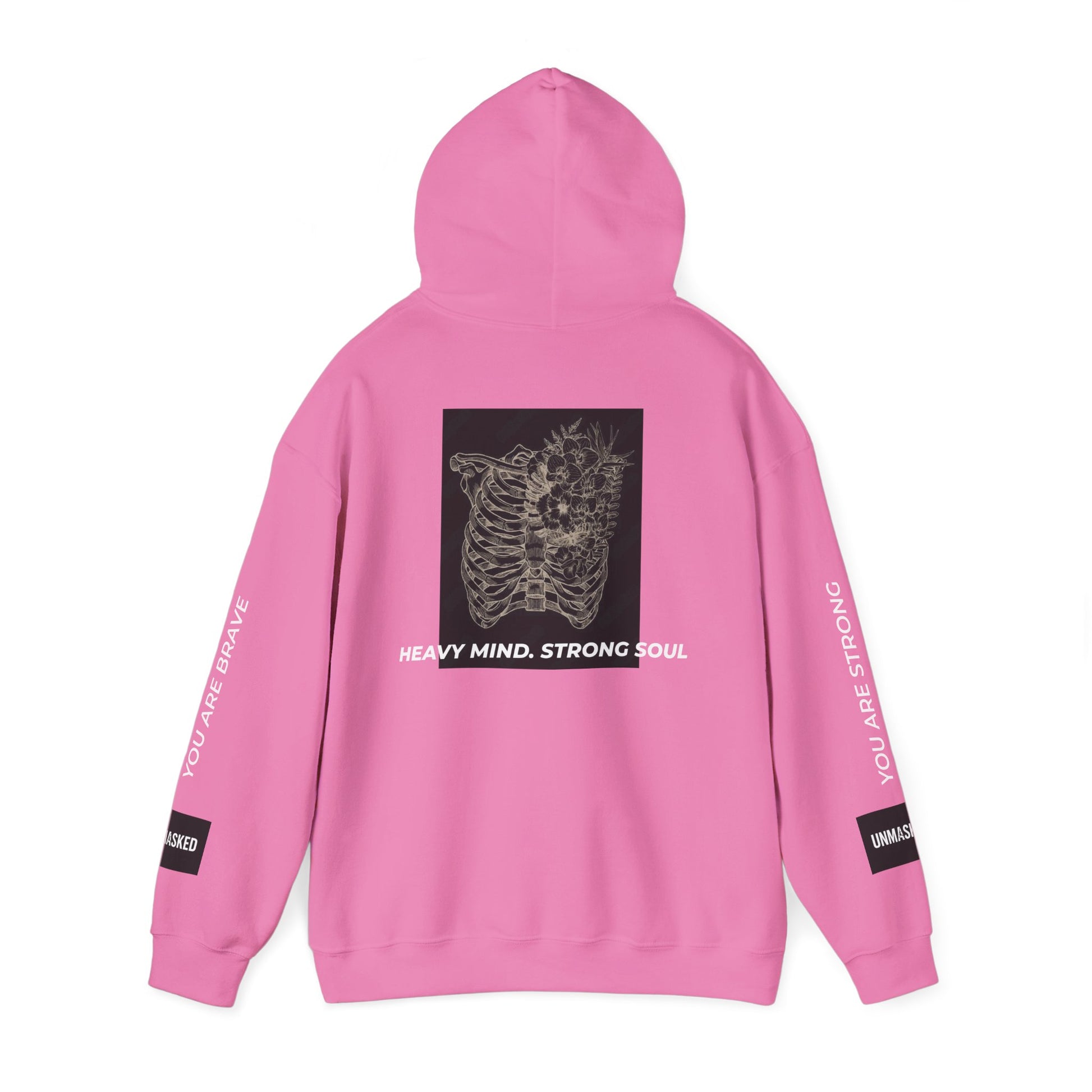 A mental health awareness hoodie, featuring a heavy mind and strong soul design. This cozy sweatshirt is perfect for chilly days and offers a comfortable, scratch-free wearing experience. The spacious kangaroo pouch pocket and adjustable drawstring hood add functionality and style. Ideal for adults looking to raise awareness for mental health issues.